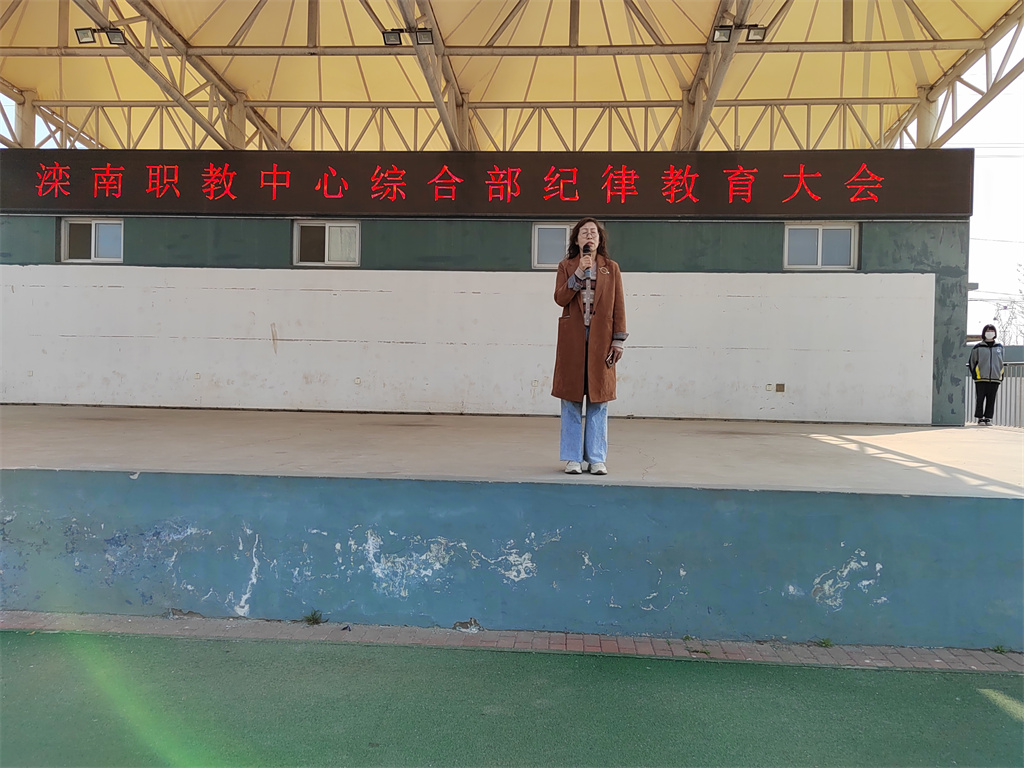 4月18日上午,滦南县职业教育中心综合部组织了学生纪律教育大会。综合部部长蒋艳萍主持会议,对学生进行纪律教育。